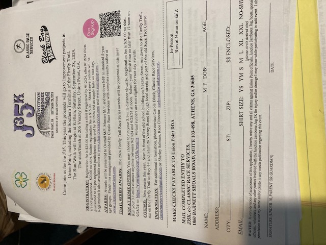 ! There will be a virtual option again this year. All profits will be used special projects around town, to include the Southern Terminus of the Firefly Trail. To register online go to www.runsignup.com