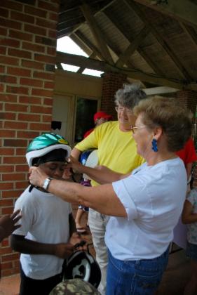 The Pilot Club of Greene County Provided safety helmets to use on the day of the ride.